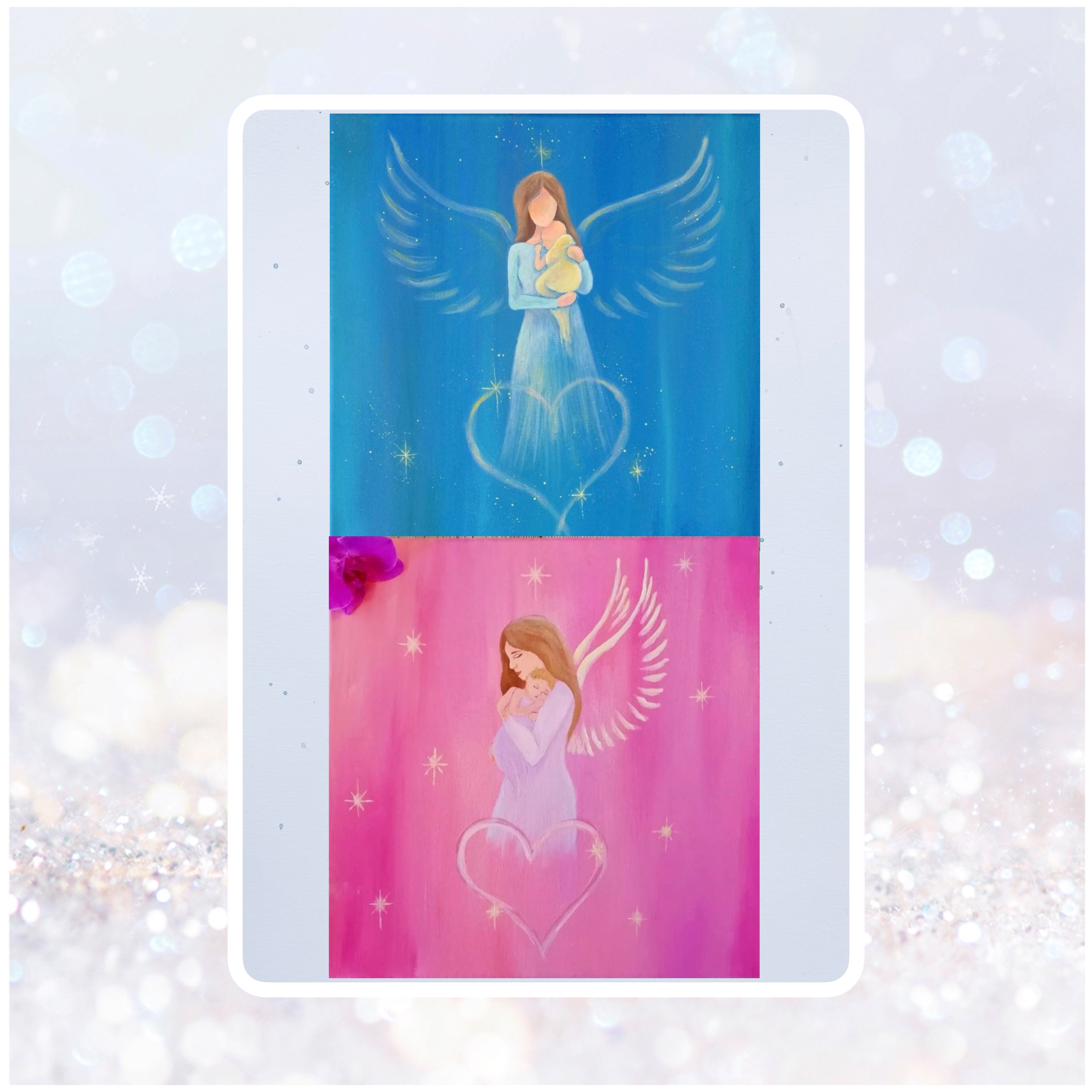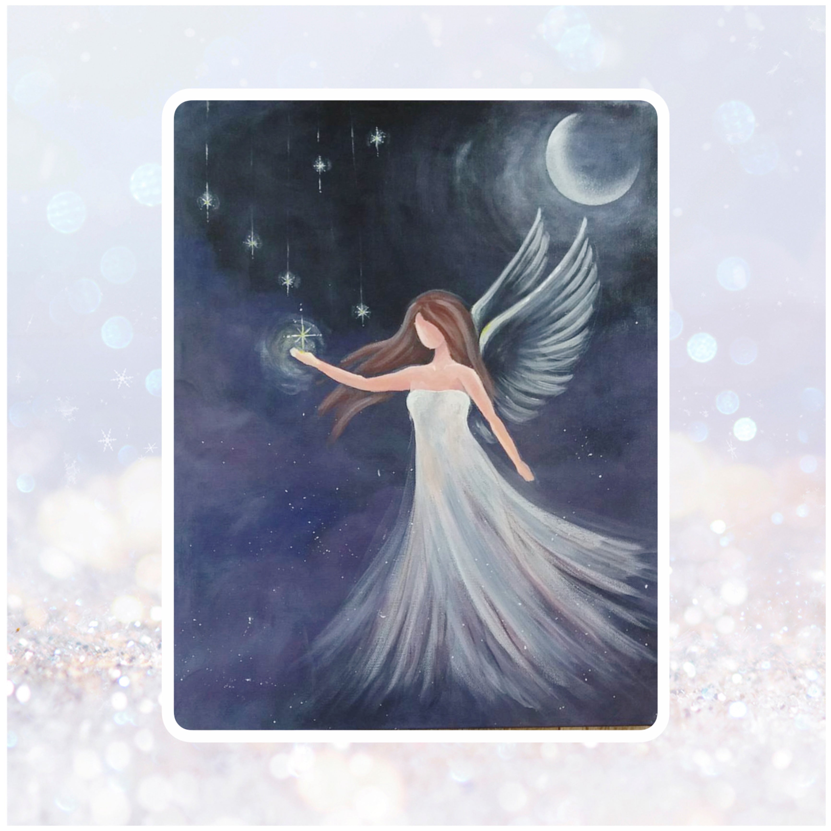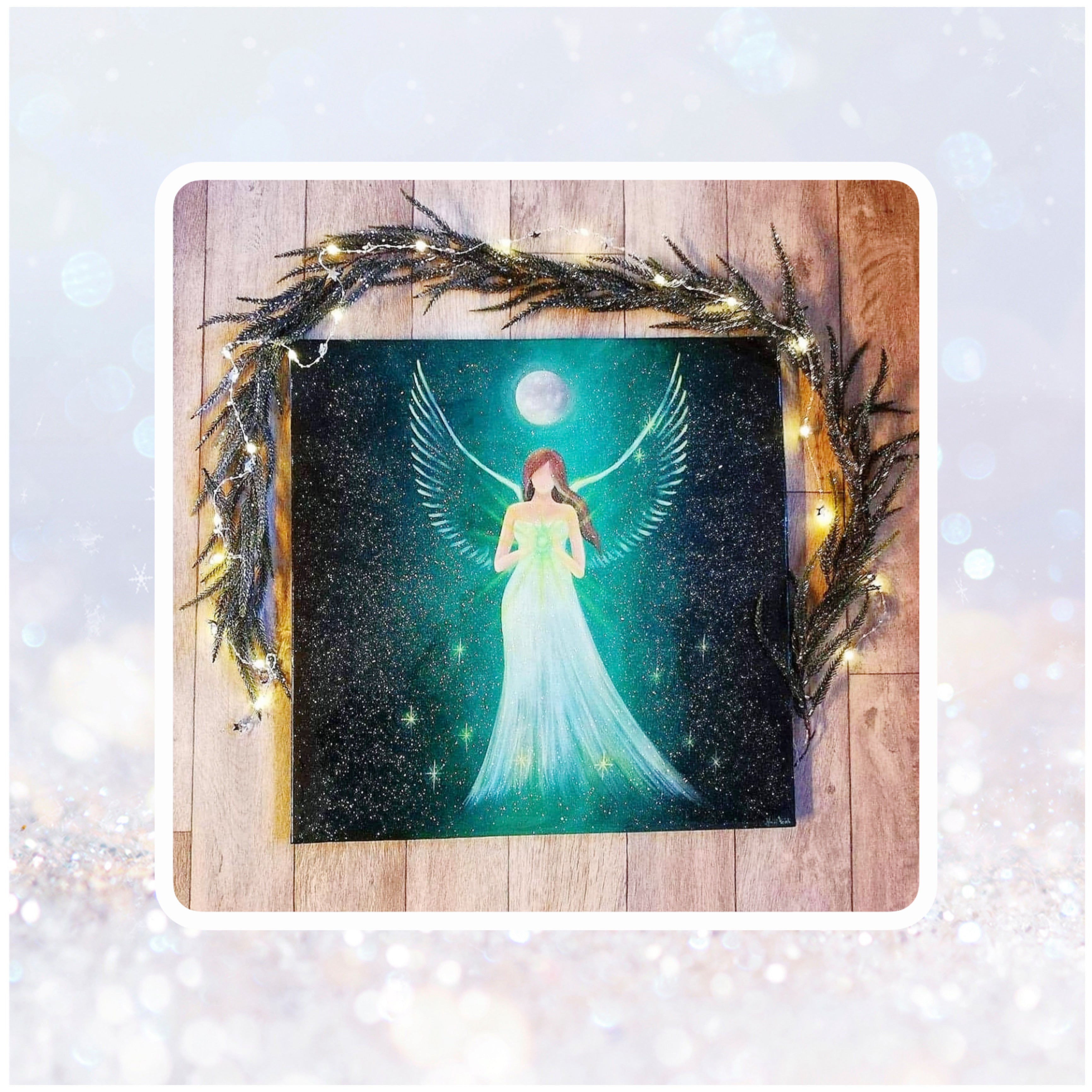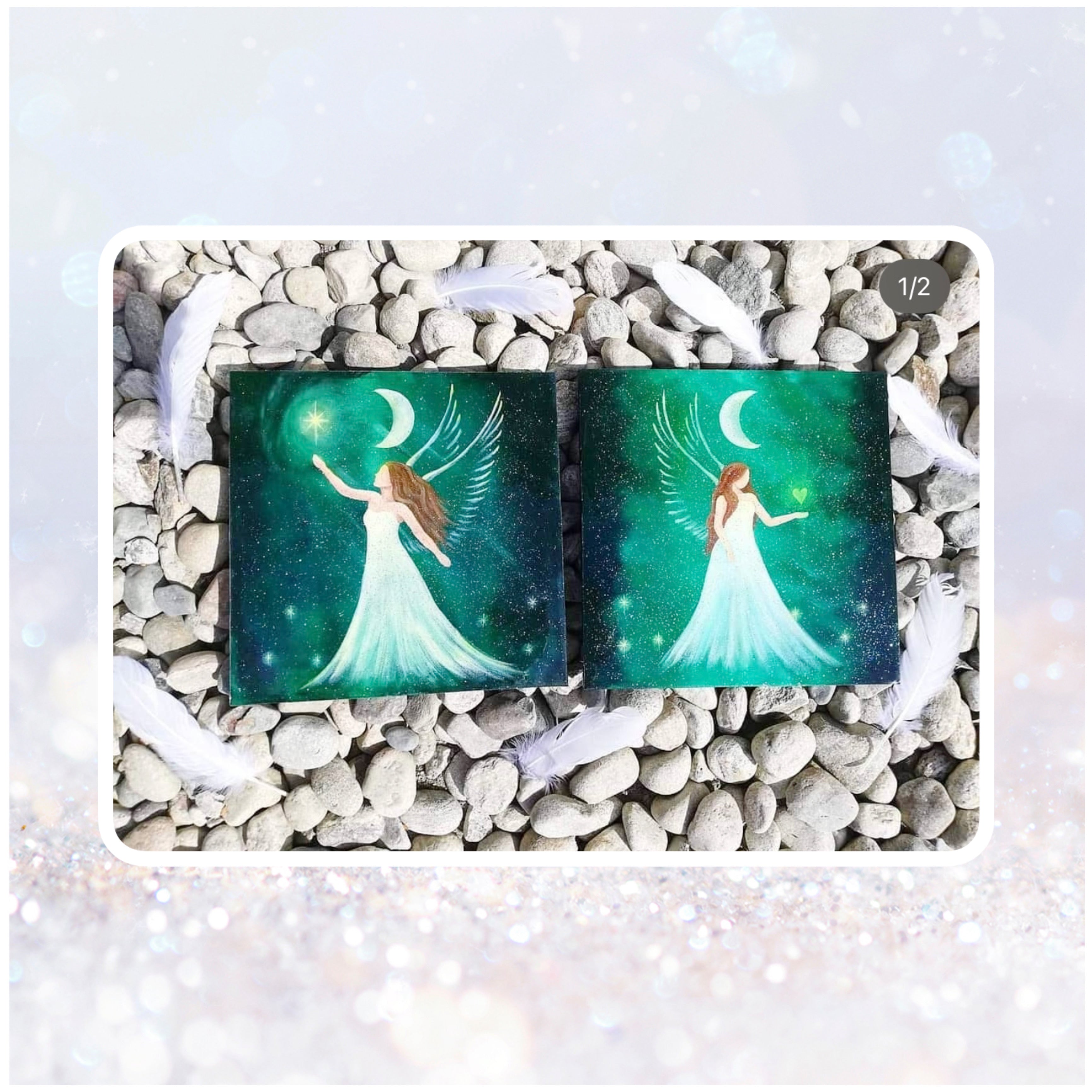 I have purchased several paintings from Heidi. These sparkling and magical angels adorn several walls in our house. Three of these paintings Heidi has painted intuitively based on my wishes. These are angels that follow different moon phases.