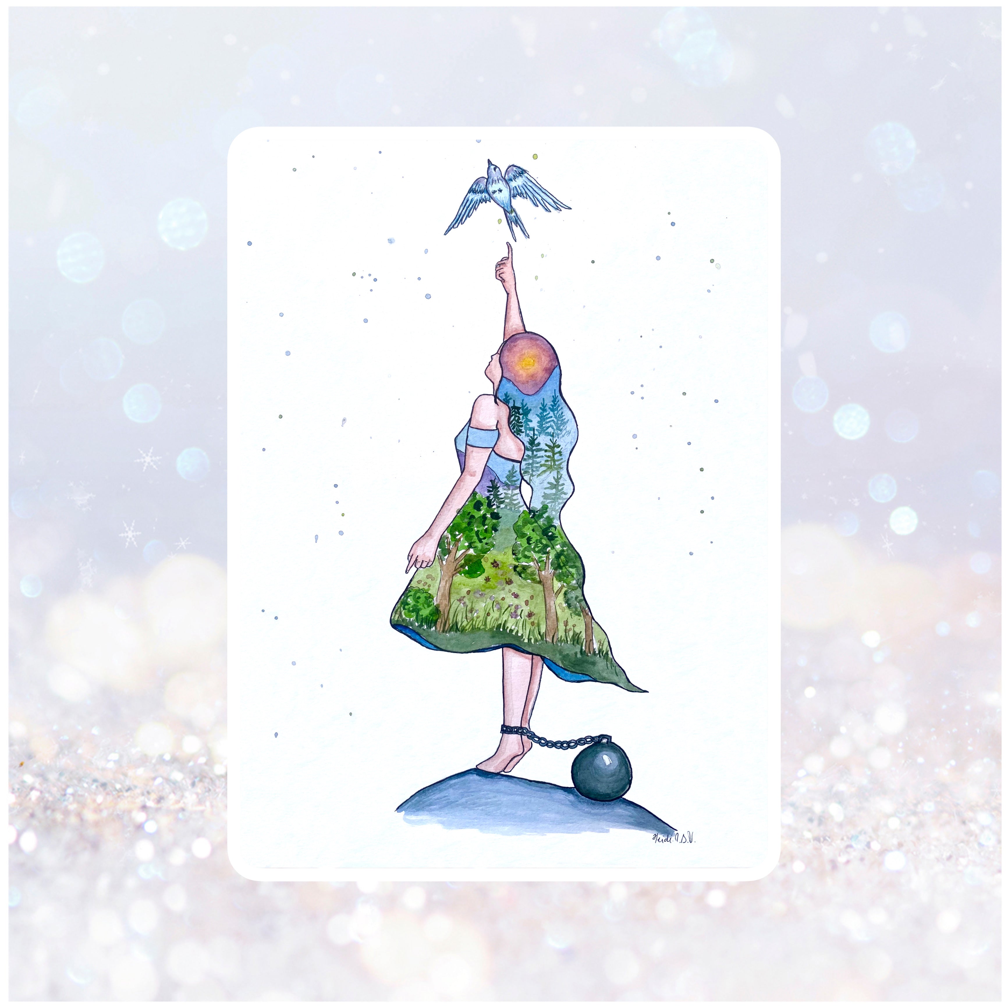 Nydelig maleri som viser hvor fanget man føler seg med kronisk sykdom. Det gir meg en god følelse og styrke av å se på maleriet. Jeg er utrolig glad i dette maleriet og det er så fint laget!