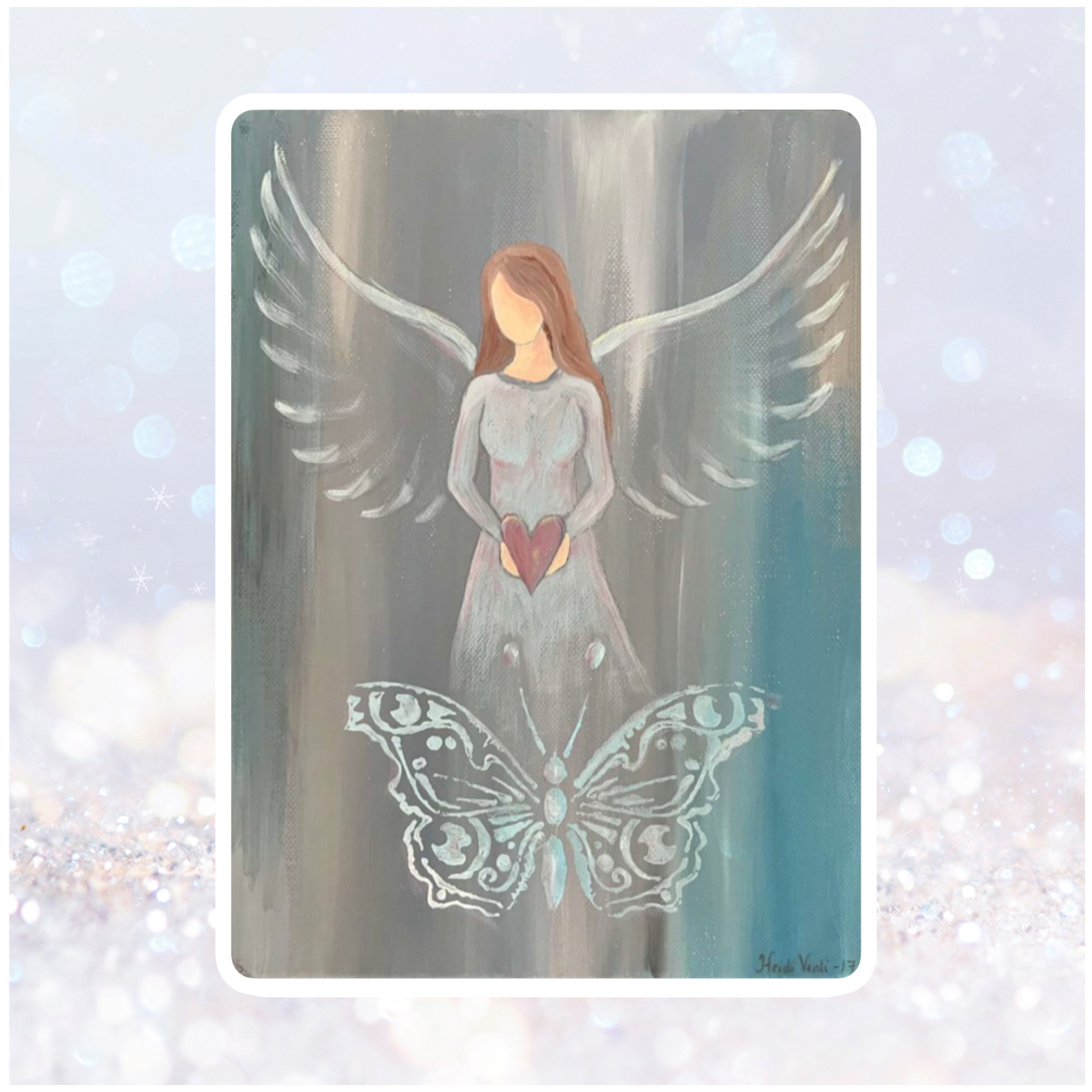 Dette bildet fikk jeg i gave kort tid etter at jeg mistet tanta mi til kreft. Heidi’s englebilder har en fredfullhet over seg og dette bildet har gitt og gir meg fremdeles ro, trøst og takknemlighet💗